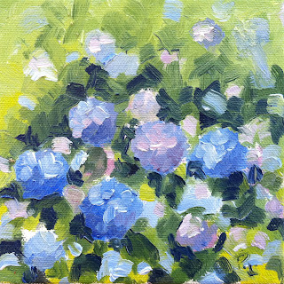 We had a nice week on the cape in New Seabury and stayed at a great house with a long row of Hydrangeas in the front. I did this small painting and gave it to Danielle, one of our partners in crime, as a souvenir. The high noon Summer sun and bright colors were an inspirational moment. Ann also did some very nice paintings of the flowers: anngorbett.blogspot.com